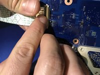Proceed to lift the latch which secures the ZIF display cable to the motherboard.