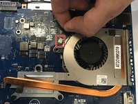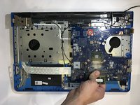 Use a Phillips# 0 screwdriver to remove the 3mm screw that secures the motherboard to the palm-rest assembly.