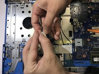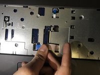 Disconnect the hard drive ribbon cable from the laptop by lifting the latch which secures it.