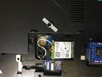 After removing the screw, remove the wireless card bracket, along with the antenna cables secured to the wireless card.