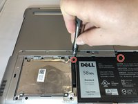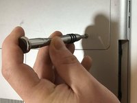 Remove the silver 15mm PH 1 screw that holds the plastic cover in place over the battery.