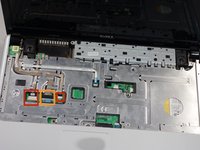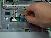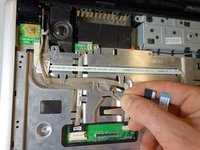 Flip the laptop over and pull the connections through until they are free from the laptop interior.