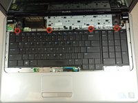 Remove the four 2mm Phillips #0 screws at the top of the keyboard.