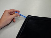 Insert the tip of the plastic opening tool into the bottom left corner of the panel.