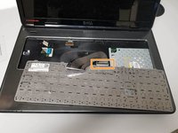 Disconnect the keyboard from the laptop by lifting up the latch holding the ribbon cable in place.