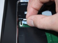 Use your finger to pull up the yellow tape and pull out the webcam cable.
