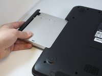 Use a Phillips #0 screwdriver to unscrew the 5mm that holds the DVD drive in place