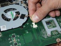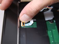 Flip up the black flap where the keyboard cable connects to the motherboard