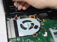 Use a Phillips #0 screwdriver to remove the two 5mm screws from the cooling fan.