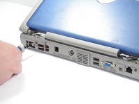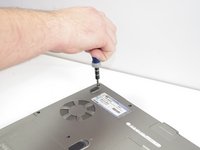Using a Phillips screwdriver remove the two screws (5.8mm) located at the rear of the laptop.