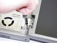 Using a Phillips screwdriver remove the four screws (5.8 mm) located at hinges of the screen.
