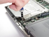 If battery has not yet been removed, remove it now and remove single silver-colored screw at top of empty battery bay.