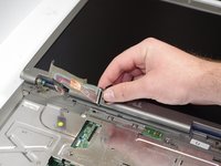 Starting from the right side of the hinge cover, use the flat end of the spudger to pry up the hinge cover and gently remove it.