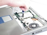 Using a Phillips screwdriver remove the four M2 x 3-mm screws holding in the keyboard.