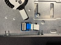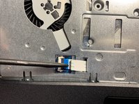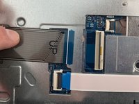 Using the flat end of the spudger, flip the black tab securing the keyboard cable up to remove the keyboard cable.