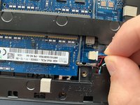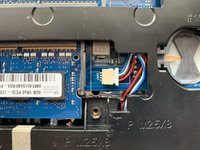 Disconnect the speaker connection by using your fingers and carefully pulling it to the right.