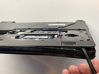 Using the flat end of the spudger, pry the bottom base off of the laptop by the crack around the perimeter of the laptop and running the spudger around the edges.