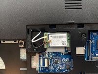 Detach the antenna cables at the gold metal end by carefully pulling them up from the Wireless WLAN Card.