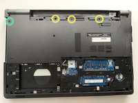 Remove the three 2 mm wafer screws in the optical drive port with the Phillips #0 screwdriver.