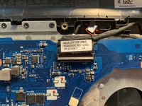 Detach the antenna cables at the gold metal end by carefully pulling them up from the Wireless WLAN Card.
