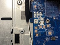 Remove the three 2 mm wafer screws in the optical drive port with the Phillips #0 screwdriver.