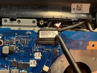 Disconnect the speaker connection by using your fingers and carefully pulling it to the right.