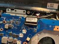 Disconnect the speaker connection by using your fingers and carefully pulling it to the right.