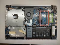 The SATA cable was under the cable for the USB and card reader module and I had to remove my battery to switch those cables because I couldn't put the SSD correctly in place. The battery is fixed with 4 screws. Make sure you disconnect it before you start to remove.
