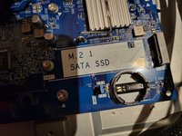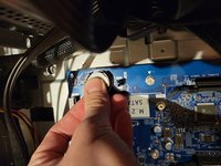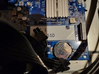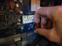 The CMOS battery is located on the motherboard, just below the M.2 SATA SSD slot. Use your thumb and nail to pull out the battery from its slot.