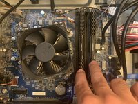 Remove the RAM sticks at the right of the CPU by pressing down on the tabs on both ends of the slot.