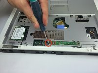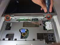 Remove two 4 mm Philips #00 screws that connect top of laptop to base..