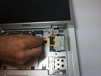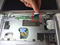 Gently lift the keyboard away from the laptop without harming the cord that is located at the bottom of the keyboard.