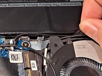 Pull the battery cable towards the direction of the opening.