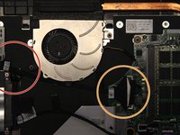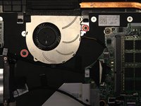 Remove the two 3mm Phillips #1 screws that hold the fan into place.
