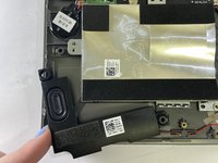 Lift the right speaker by releasing the rubber grommets from the slots on the palm-rest assembly.
