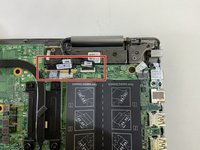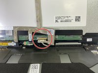 Peel off the tapes that secure the display cable and touch-screen board cable to the system board.