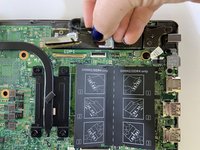 Remove the four 3 mm screws holding the battery in place with a Phillips #00 screwdriver.