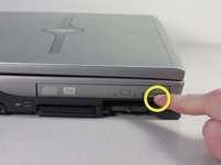Pull the handle to eject the optical drive unit from the slot, and slide it out.