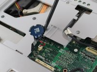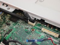 Firmly grasp the blue tape attached to the LCD display ribbon cable connector and pull upward away from the motherboard.