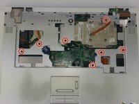 Remove the seven 6mm Phillips screws holding the trackpad/palm rest to the motherboard.