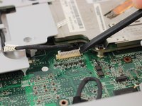 Remove the low profile connector for the keyboard status lights located next to the video card heat sink using a spudger.