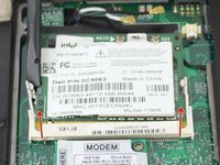 Gently pry open both retaining clips on either side of the WiFi card using a spudger.