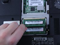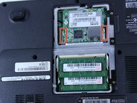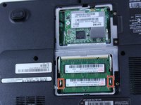 Lift the plastic cover off to reveal the RAM and the Wireless.