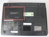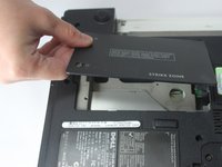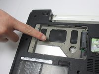 Using your fingers, open and remove the access door from the laptop, exposing the hard drive underneath.