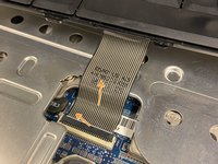 Rotate the latch up toward the trackpad, then carefully remove the ribbon cable.
