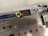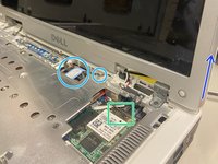 Unscrew the grounding cable on the display cable. Disconnect the display cable by pulling up on the tab.