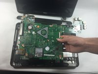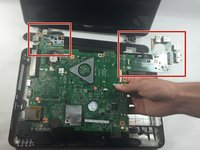 Disconnect the two minor boards, the VGA/Power Board on the left, and the I/O Board on the right, attatched to the system board.