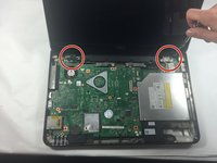 Unscrew the five 5 mm Phillips # 0 screws located in the red circles, found on the system board.