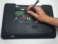 Remove the two 5 mm Phillips # 0 screws holding in place the hard drive.