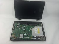 Unplug the rectangular black LCD cable attached to the system board towards the upper left hand corner.